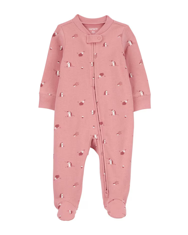 Deixe a sua baby ainda mais fofinha com o Macacão bebê com pezinho porco espinho rosa | Carter's. Feito de algodão, o macacão possui zíper inverso, martingale para proteger os dedos de sua baby, gola em ribana canelada e manga longas. A estampa de porco espinho é um detalhe a parte que traz ainda mais charminho para a produção da sua pequena. Aposte!